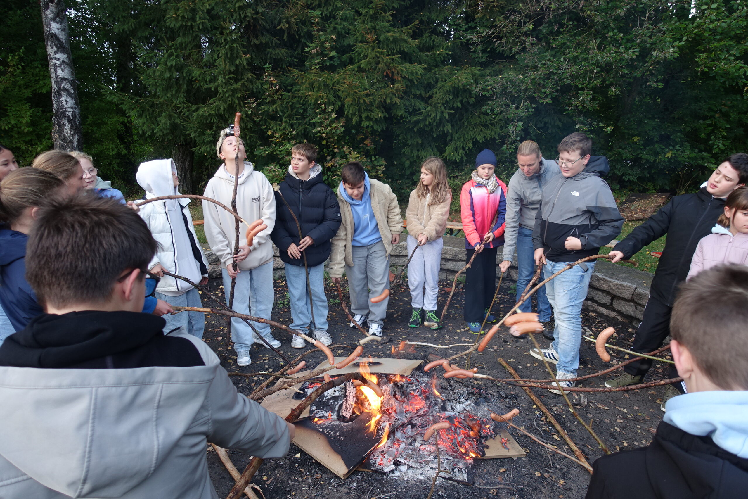 Am zweiten Tag ging es mit frischer Motivation weiter. Nach dem Frühstück stand erneut intensives Arbeiten an den Forschungsprojekten und am Robot Game auf dem Programm. Nach dem Mittagessen folgte eine gemeinsame Teamphase, in der Strategien, Ideen und Aufgaben besprochen wurden. Diese intensive Zusammenarbeit zeigte eindrucksvoll, wie gut die Gruppen harmonierten und sich gegenseitig unterstützten. Ein besonderes Highlight war das Lagerfeuer am Abend, bei dem trotz kleiner Missgeschicke viel gelacht wurde. Viele nutzten die gemütliche Atmosphäre, um gemeinsam ihre Roboter zu verbessern und neue Lösungsansätze zu entwickeln.