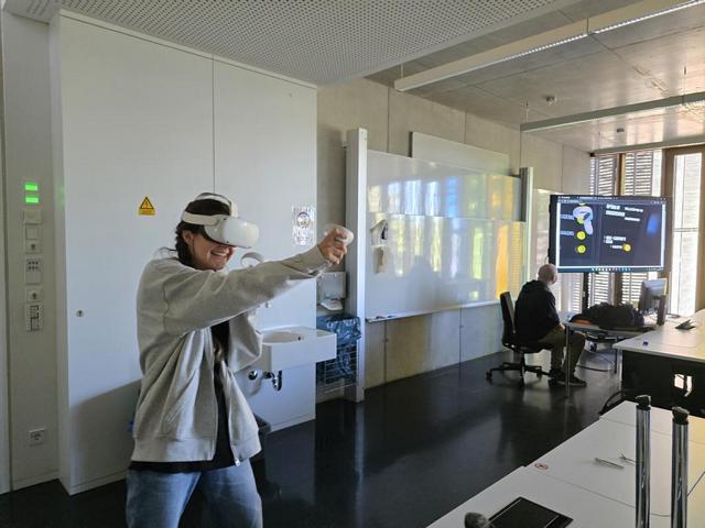 Im Rahmen des Wandertags durften 33 SchülerInnen der zehnten Klassenstufe des Ernst-Abbe-Gymnasiums Oberkochen gemeinsam mit vier AustauschschülerInnen aus Kasachstan die Hochschule Aalen besuchen. Dank der hervorragenden Organisation durch die Schulkontaktstelle der Hochschule – vertreten durch Dr. Piyali Bhattacharjee und Kristina Gaugler – erwartete die SchülerInnen ein vielfältiges Programm mit spannenden Einblicken in Informatik, Robotik, Gesundheit und Virtual Reality.